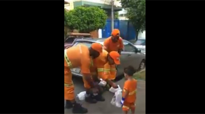 Garotinho 'ajuda' garis na coleta de lixo em Belo Horizonte e viraliza