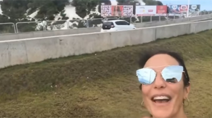 Ivete Sangalo para carro no meio da rua para ver homenagem dos fãs em outdoor