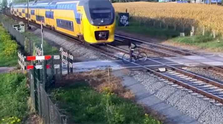 Ciclista escapa por pouco de ser atropelado por trem na Holanda