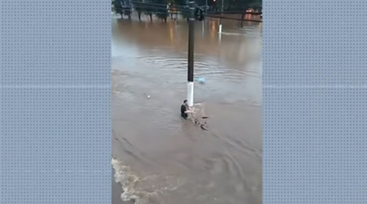 Vídeo mostra ciclista que morreu em enchente no ABC sendo levado por enxurrada