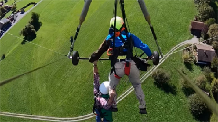Turista fica pendurado em asa-delta apenas pelas mãos em voo na Suíça