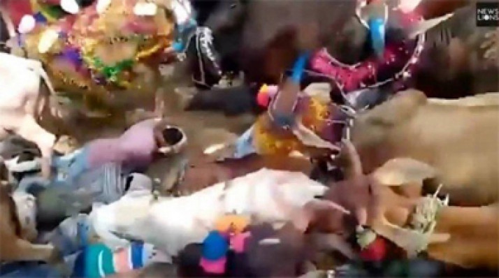 Devotos se deixam ser atropelados por dezenas de vacas para ter boa sorte
