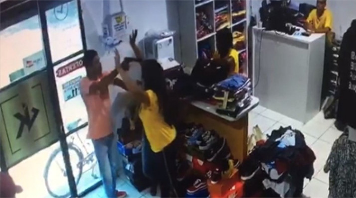 Vídeo mostra assaltantes renderem funcionários de loja durante assalto em Teresina