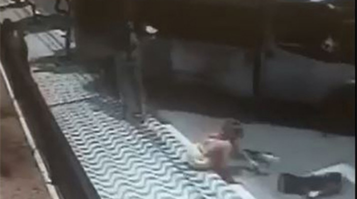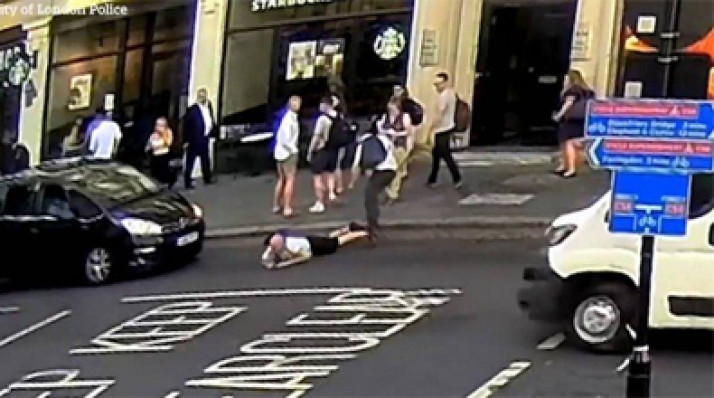 Pedestre é empurrado para o meio de rua e fica por um triz de ser atropelado