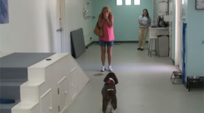 Mulher desaba ao ver seu cão tetraplégico andar novamente