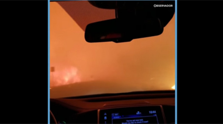 Família conduz entre chamas e consegue escapar de incêndio na Califórnia