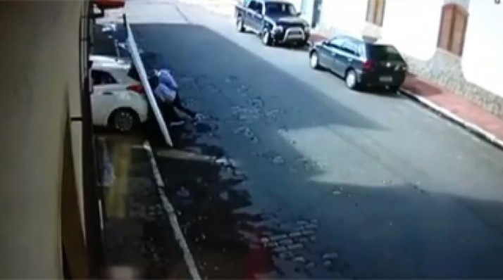 Carro desce sozinho de garagem e derruba portão que atinge casal de idosos