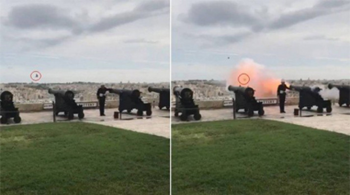 Pombo 'no lugar errado, na hora errada' é atingido por disparo de canhão