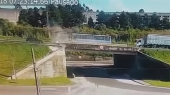 Câmera registra o momento que carro cai de viaduto em Araucária