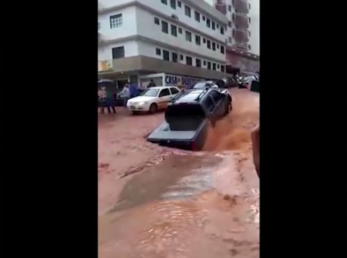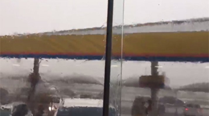 Cobertura de posto de combustíveis desaba durante temporal no Paraná