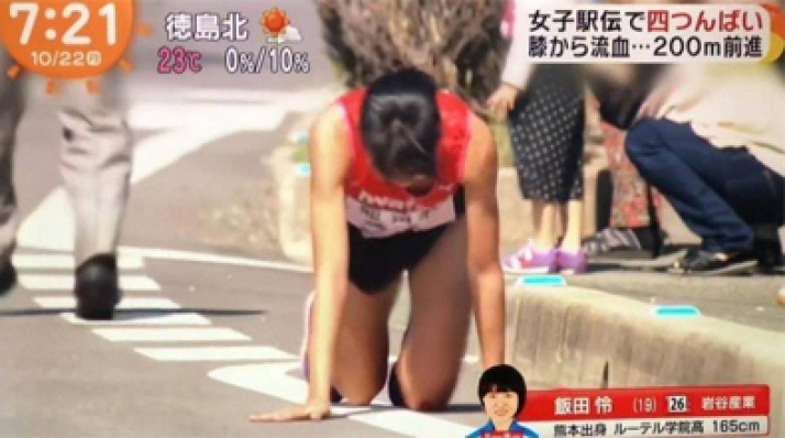 Com perna fraturada, corredora termina prova de joelhos por 300 metros