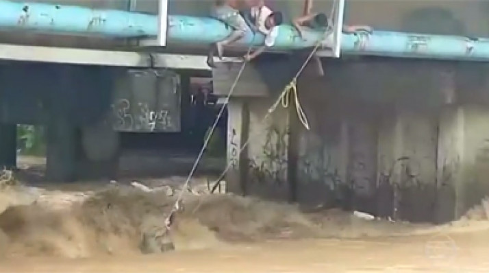 Homem escapa de correnteza de rio com ajuda de pedestres no México