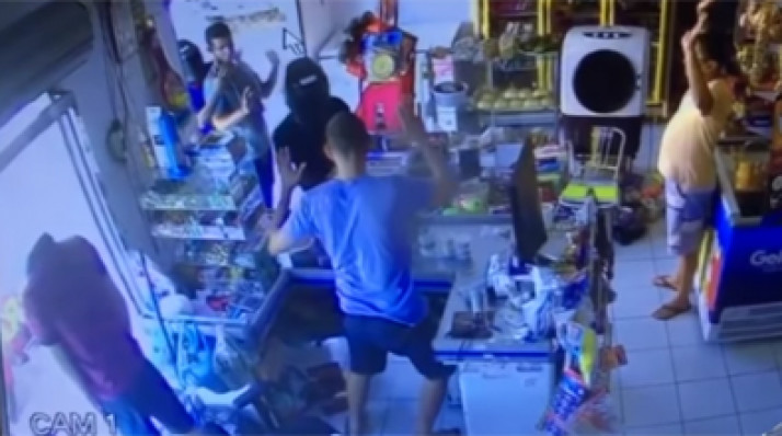Bandidos rendem clientes, fazem arrastão em comércio e saem atirando
