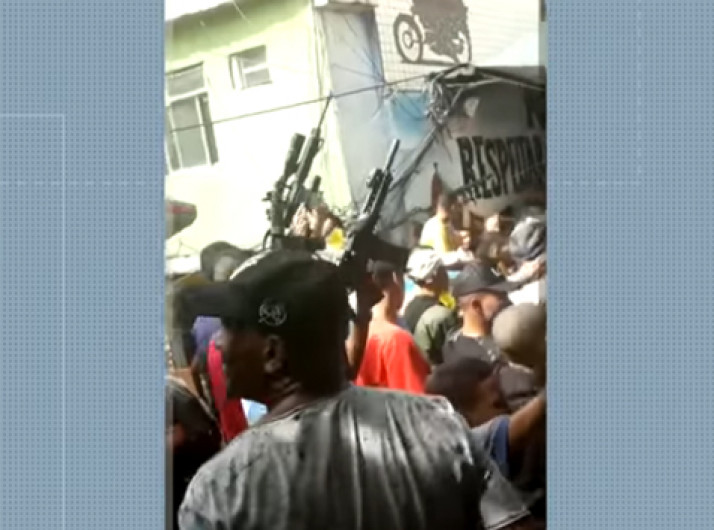 Vídeo mostra bandidos com fuzil em baile funk na Rocinha