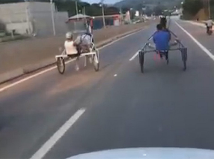 Cavalo cai durante racha entre charretes em rodovia no interior de SP