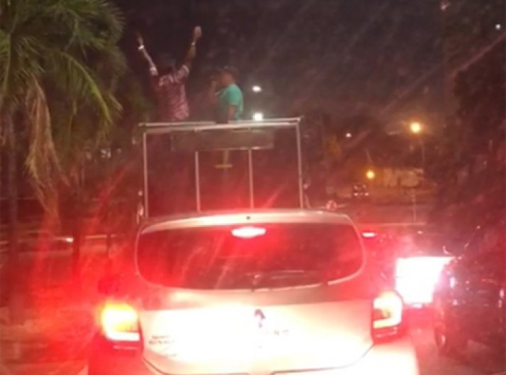 Homem comemora divórcio em cima de trio elétrico em Goiânia
