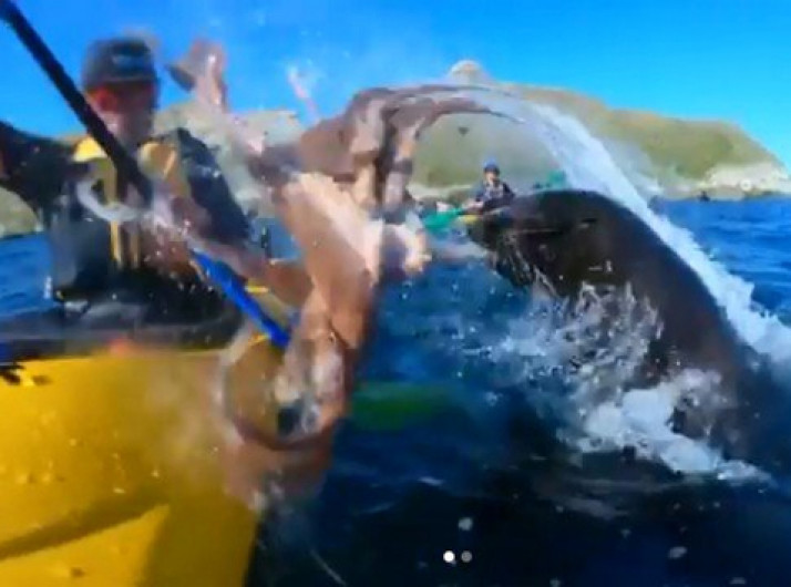 Foca lança polvo na cara de homem em caiaque na Nova Zelândia