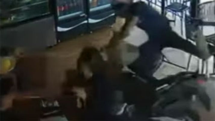 Moto desgovernada invade padaria em alta velocidade e quase atinge clientes; veja