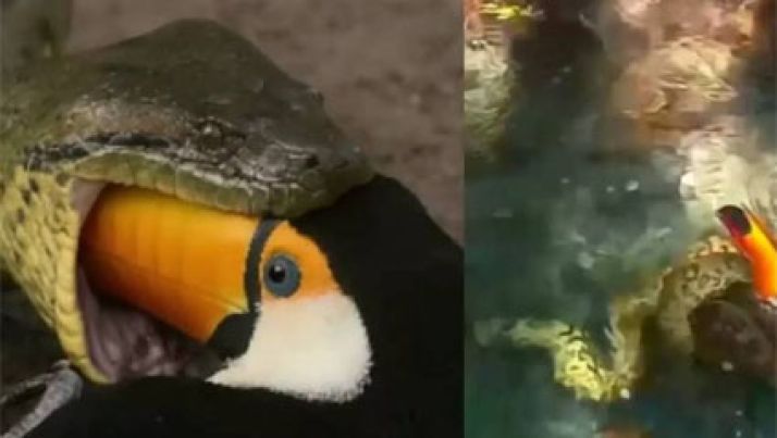 Sucuri come tucano pelo bico e turistas registram a cena em Bonito; veja