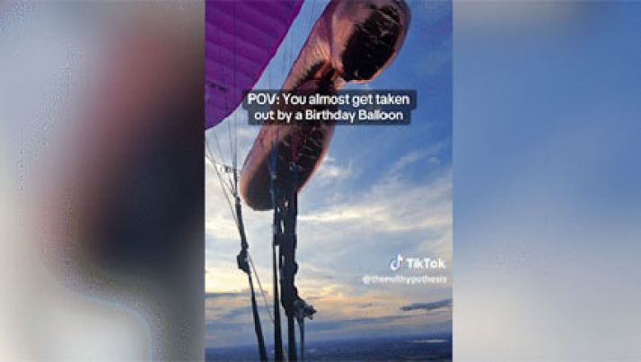 Parapentista grava momento de grave tensão após colidir com objeto inusitado; veja