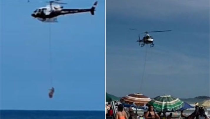Helicóptero Águia resgata cinco banhistas arrastados por correnteza no litoral de SP