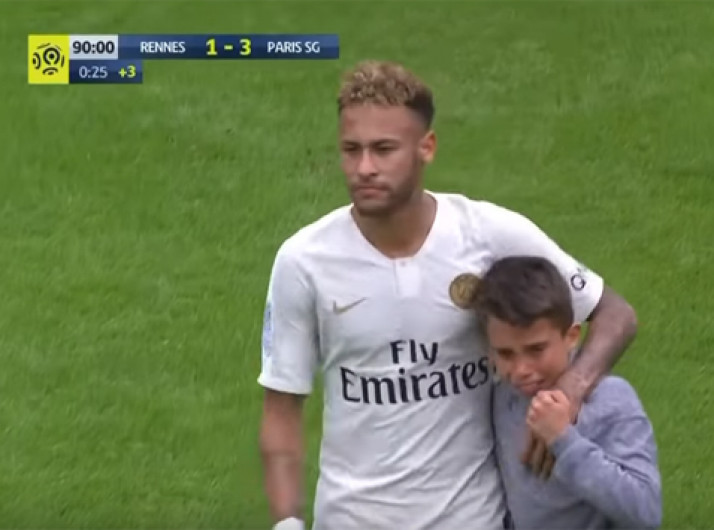 Pequeno torcedor recebe proteção de Neymar após invadir o campo