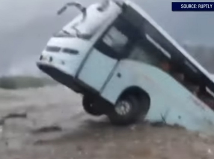 Enxurrada arrasta ônibus de turismo na Índia; veja