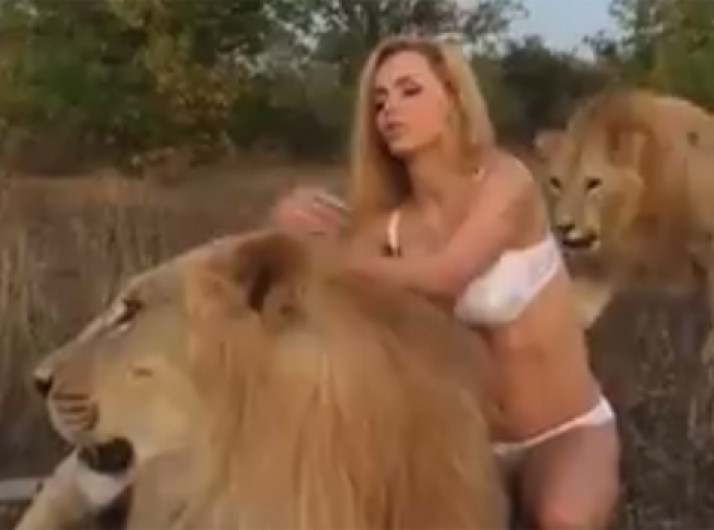 Atriz pornô causa revolta por posar com leões em reserva ambiental