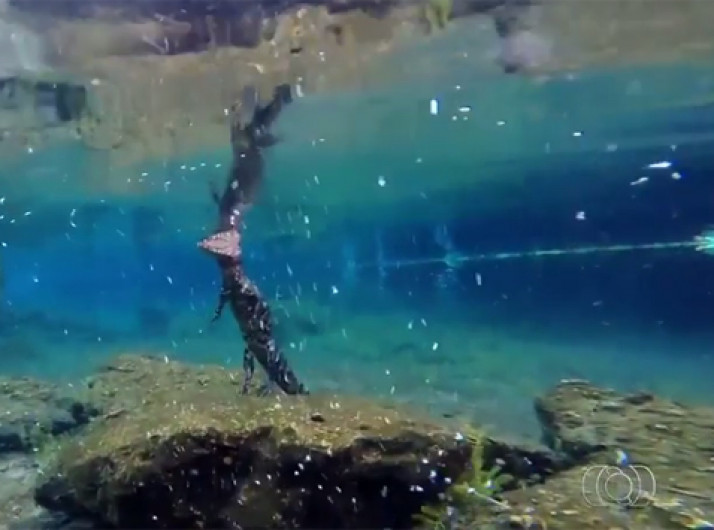 Vídeo mostra jacaré em posição curiosa em Lagoa Santa em Goiás