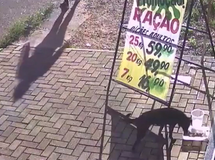 Cachorro 'furta' ração de pet shop e câmeras registram toda a ação
