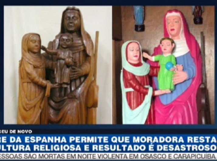 Moradora de vilarejo restaura escultura e resultado é desastroso