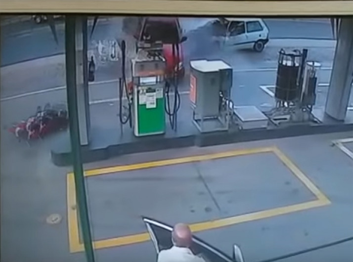 Carro desgovernado arremessa veículos em posto de combustíveis