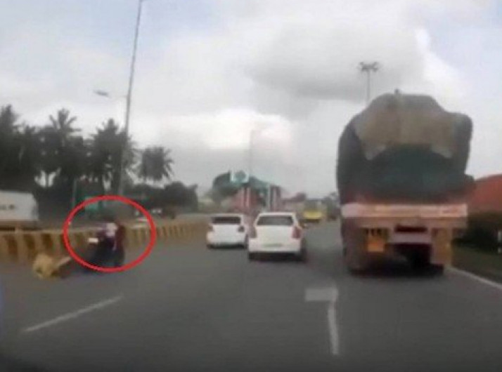 Após acidente, bebê 'pilota' moto em estrada na Índia