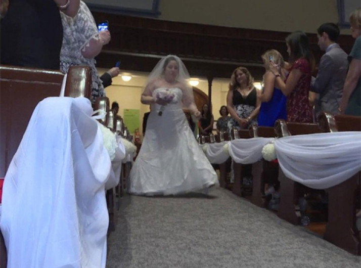 Casamento: mulher que perdeu braços e pernas entra andando em igreja