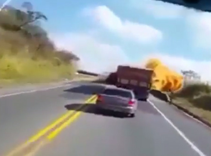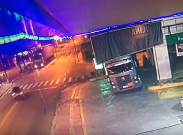 Imagens mostram momento em que carro bate de frente com caminhão