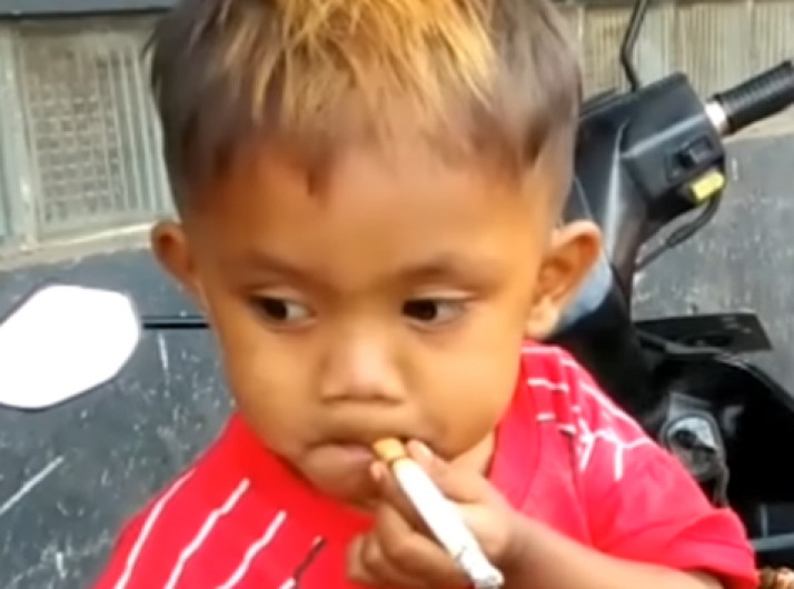 Menino de 2 anos e meio fuma 40 cigarros por dia na Indonésia