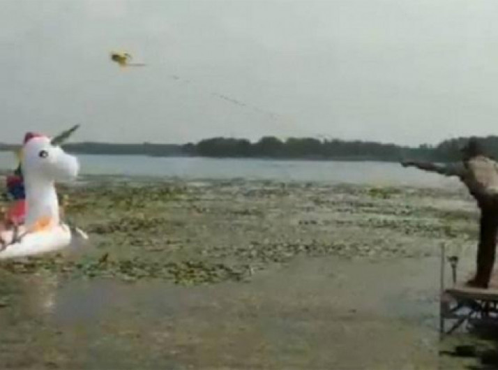 Polícia resgata cinco mulheres presas em bote inflável de unicórnio