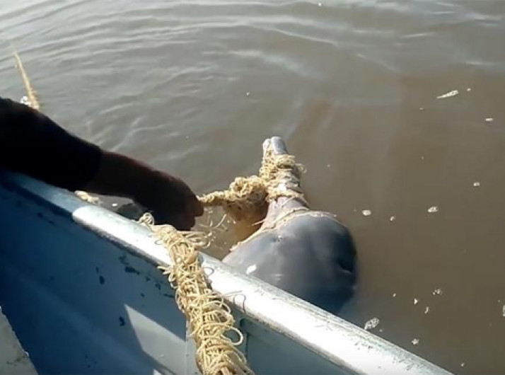 Vídeo mostra resgate de boto preso em rede de pesca no Amazonas