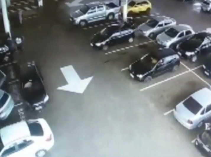 Carro desgovernado causa acidente no estacionamento de supermercado