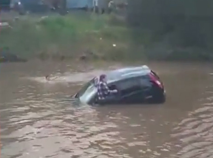 Vídeo mostra resgate de casal em carro que entrou no Rio Jacuí