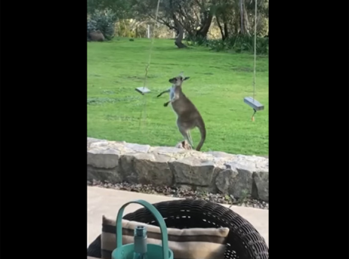 Na Austrália, canguru tenta subir em balanço e viraliza