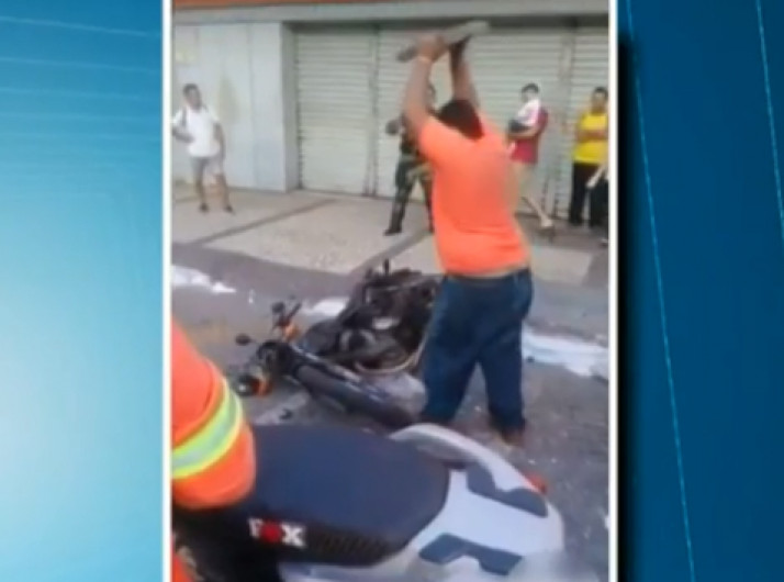 Irritado com apreensão, homem usa pedra para quebrar a própria moto