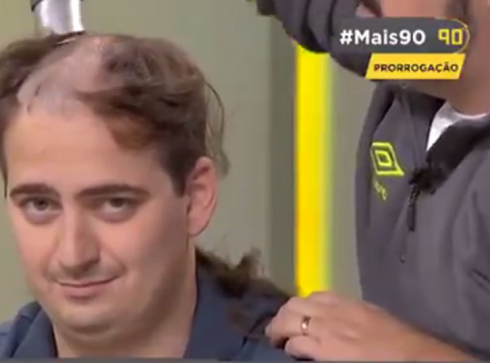 Comentarista perde aposta e raspa cabelo ao vivo em programa de TV