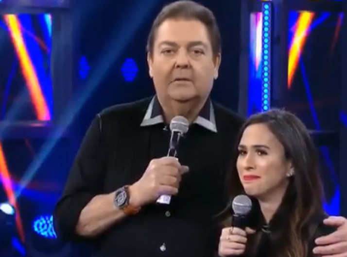 Grito de Faustão assusta Tatá Werneck ao vivo no 'Domingão'