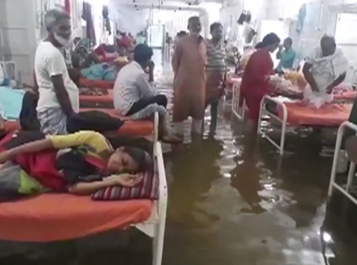 Na Índia, inundações levam peixes aos corredores de um hospital