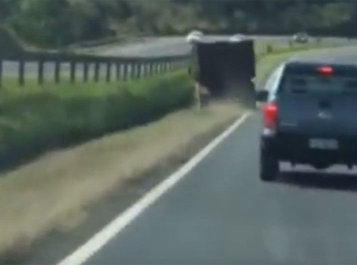 Caminhoneiro anda em zig zag até sair da pista e tombar