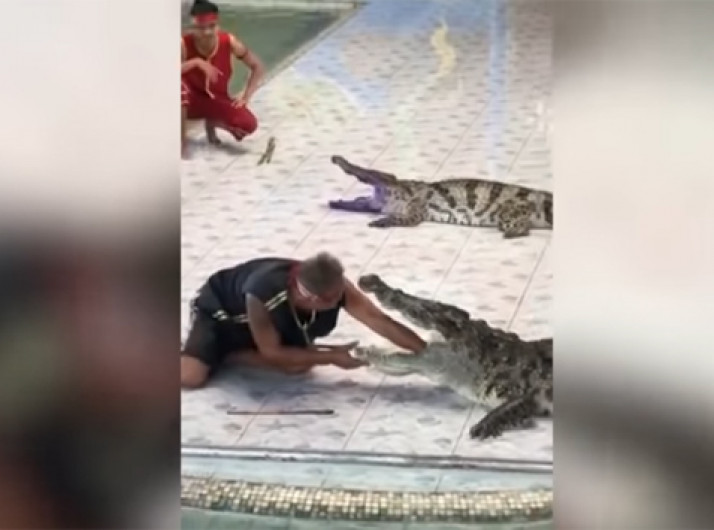 Crocodilo ataca treinador durante demonstração na Tailândia