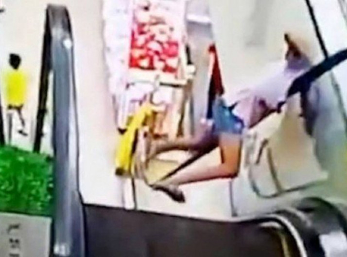 Adolescente fica com a cabeça presa ao subir em escada rolante