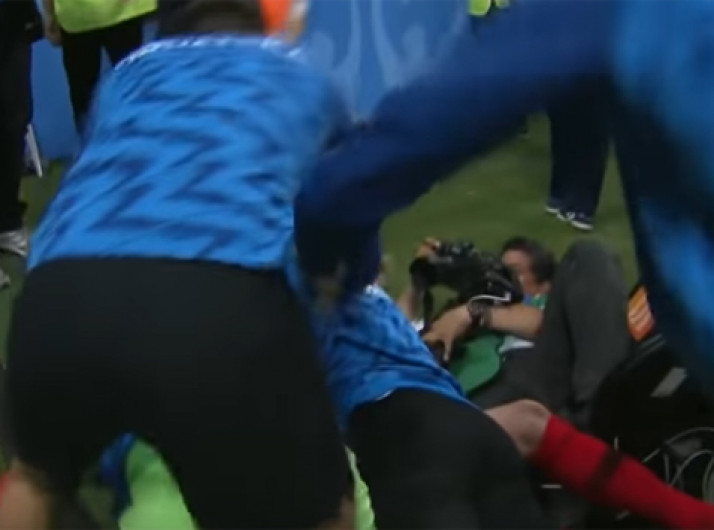 Fotógrafo é ‘atropelado’ por jogadores croatas em comemoração