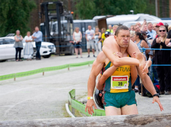 Casal da Lituânia vence campeonato mundial de carregamento de esposas